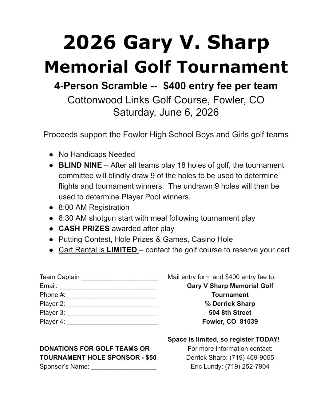 2026 Gary V. Sharp Memorial Golf Tournament