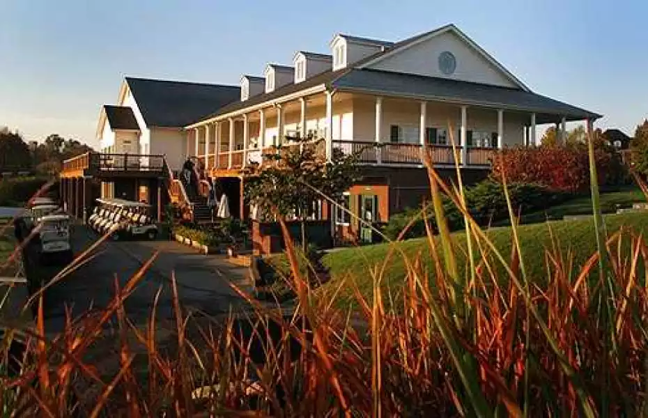 The clubhouse and surrounding patio areas provide a comfortable setting for organized events and group outings.